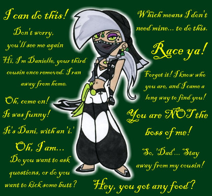 Dani has only appeared in Kindred Spirits so far, sadly. SWQ Dani is my own creation based on a fanfic idea I have. She was inspired by the Evanescence Song by the same name. I found a fan video to it, if you're interested It's Vlad centered but whatever... [link]