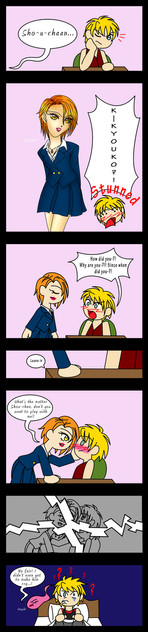 Later that day, Kyouko was forced to apologize to the business tycoon in Room 53 for the angry string of curses that followed this thought, which Kyouko blamed completely on Shou. He was the one who taught her most of those words, anyways…