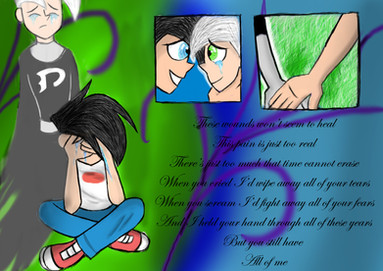 ~Samantha-GirlScout asked me to do a picture with the Nickleback song Savin' Me, and I accepted. After which I went through what was easily the most stressful time of my life, which prompted me to take it out by being horribly cruel to Danny and Sam.Oh, on a side note, I'd also like to dedicate this to ~RoyaleRockerella , who I know is working her butt off on a fanfiction using this song.