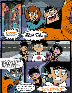 You have NO idea how hard it was to find reference for Granny Manson and Mrs. Foley. Also, this is my first time drawing Jack. He's actually quite easy, to tell you the truth. XD At any rate, here's our heros hanging out with the families. Granny Manson and Danny are joyriding on Granny's scooter, which Pam and Jeremy are all kinds of Not Happy about. I don't know what Jack and Tucker are doing, but they should probably be wearing eye protection. Or Helmets. Or both. And there at the bottom, Sam's having some good old-fashion and much needed girl talk with Tucker's mom. As a teenaged girl, Sam has to have someone she goes to for advice with all that awkward hormone crap she's dealing with right now. Since it's definitely NOT her mom, and talking with Maddie will be a little awkward considering that she's her crush's mom, that leaves Mrs. Foley as the best option.Difference #2- Friends call your parent's Mr. and Mrs. and your grandparents Sir or Ma'am. Best Friends may as well BE a member of the family.