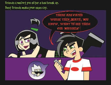 Yeah, they got a crazy, fun friendship. ^^ XD Danny's hair's fun to draw, but it took me lots of practice to get it right. 'winces as she looks back at her old stuff.'