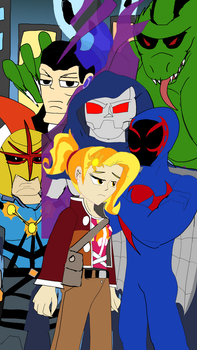I'm not objecting Spidey, but he's not a super hero of this generation and he is a Marvel hero, so he doesn't really fit in with the others. I do like the others as a team, but I won't go with the titans x or those outfits on Danny and June. I think they should have Chiro from Super Robot Monkey Team Hyper Force Go and go by the Hyper Force. But for the record that's just what I think.