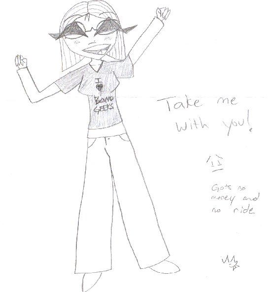 Oh ho, Wings, you're such a nutty kid. (bleh). You have my condolences, if that's the most appropriate wordc to use, about the art thieft. It's been a while since you've drawn little DP styled you.
