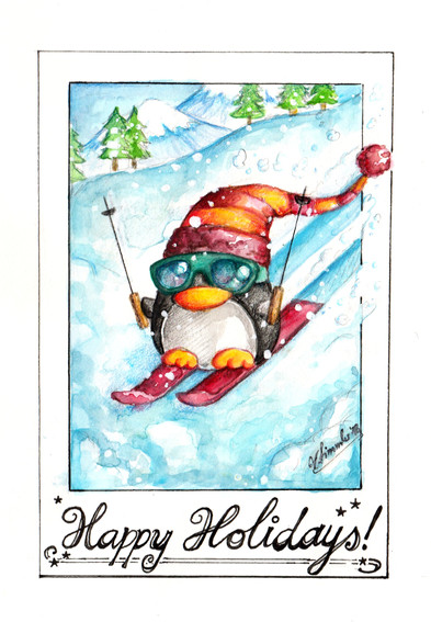#holidaycardproject #holidayseason #penguin #holidayschristmas #holidaycardproject2018 #happyholidays #watercolor