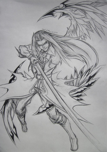 So this one i was hoping for a little darker, more anime style Sephiroth. I dont think i hit it tho..im kinda disappointed in this one. Oh well..heres another drawing of the famous One Winged Angel.**note** this is my first attempt at Sephiroth. Also check out my First Cloud Deviant