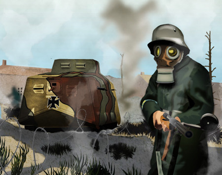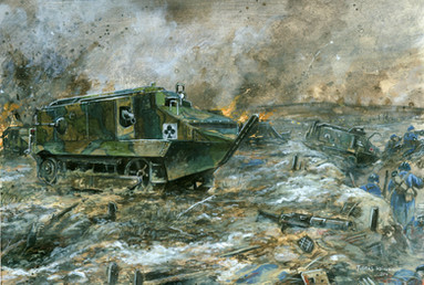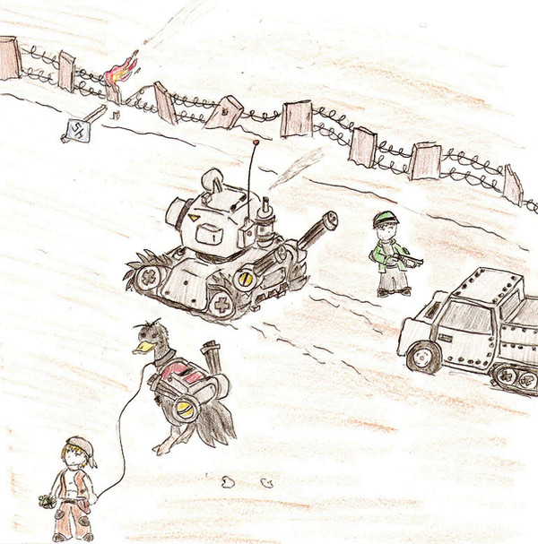 Jeanne from my comic "Shadowless" [link] on a scouting mission. The derelict armoured car is a "Charron" that in real life was the world's first armoured car, being introduced in 1905. It was used in small numbers during WW1, but its performance was pretty poor.Drawn in Painter 6 with a Wacom tablet.