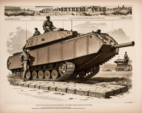 The drawing shows a cutaway of 5.3cm Schumann-Gruson Fahrpanzer (a shortening of "fahrbaren Panzerlafette", "mobile armour"), a type of late 19th century mobile gun turret whose role was to combat enemy infantry attacks.