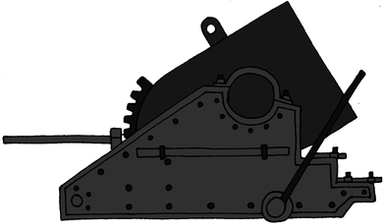 The cupola shaft was made out of 3mm steel plate embedded into concrete and formed two levels - the upper one for the loading and firing of the gun and turret traverse, while the lower one for the counterweight mechanism which, in the drawing, is rotated counter-clockwise in the horizontal plane by 100Β°, in order to bring it into view - normally it would have been located just behind the door on the right as you entered the barbette from the ventilator room.