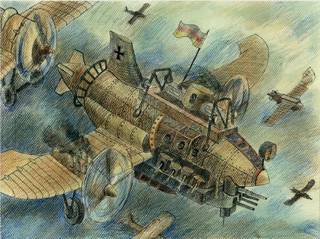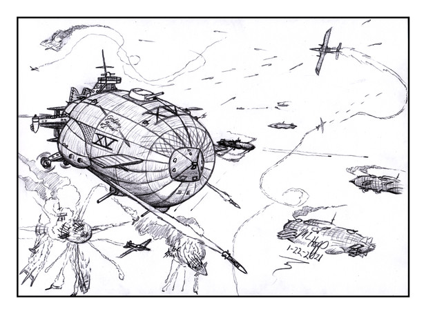 Another Shadowless themed drawing, this time using traditional media such as ink and markers."... and it was at this time that the ship pitched up violently and I was tossed overboard. A further flack explosion tore off the right aft wing sending the ship into a steep spin and I waited for it to pass me before I deployed my parachute. My other shipmates were not so fortunate and some of them were hit by the falling wreckage. Luckily for me, the wind was blowing in the good direction and I managed to land behind the British lines."