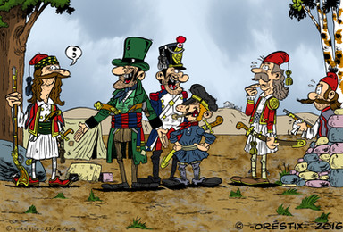 In the back you have a gendarme (white insignia), another Dorobant, a Chasseur (light infantry) and another line infantryman.