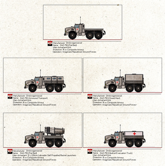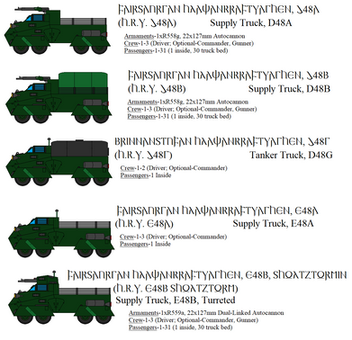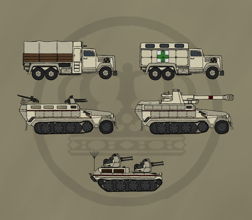 The Marbanian Army's most widely used vehicle is the locally manufactured BE6-T general transport truck. This basic lorry can be converted to a variety of roles, including troop transport and mounting different heavy support weapons.
