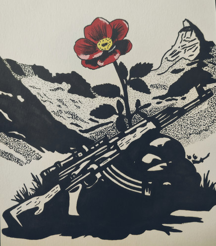 The casings are 7.62x54R Russian and I decided to make them in brass instead of lacquered steel, so this could in fact represent WW1, WW2 and the current invasion of Ukraine.