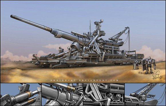 The railway gun reminds me of the German Krupp K5 railway guns