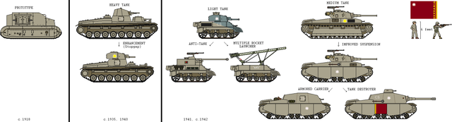 A pity that you have only AU comic version here, this picture(with proper info and years) belongs to high quality tank history encyclopedia