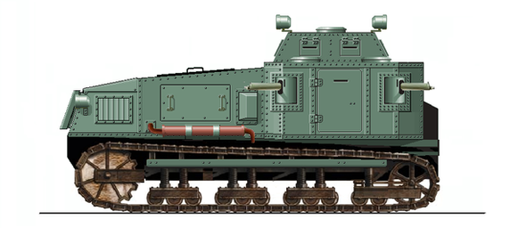 After the first months of the conflict showed the operational limitations of armoured cars for close infantry support, the French High Command ordered the development of a light two man tank capable of accompanying the troops through terrain churned up by artillery.