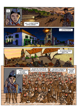 Also, the perspective in the last panel, with the church tower in the background, would be impossible - the spire is not visible form that far up the street, but I wanted to visually link this page with the next.