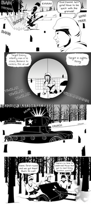 This is a short comic for a contest over at World of Tanks.[link]The deadline was brutally short (6 days, and it fell right into the most hectic week of the past two months), so it didn't come out quite as good as I hoped, but still it was fun to do, because I've been toying with the idea of drawing a WOT comic for quite some time and this contest merely gave me the best opportunity to get off my lazy ass and actually do it.
