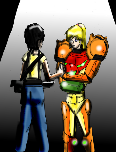 I got a pretty cool comment on an older deviation the other day. lady-warrior commented on Ripley Resurrection, a drawing I did 5 years ago. She said,"she's awesome. she and samus should become friends."So I got an idea. I'm really trying not to do too much fan art. I want to be more original. But, I had to bring that comment to life. So here it is, dedicated to lady-warrior for the awesome idea