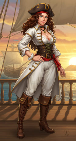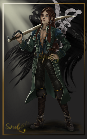 In terms of personality, Anna can be a very intelligent and charming individual, but this comes into conflict with her natural rebelliousness and temperament; overall she's something of a cross between an aristocrat and a wild woman. Though she is normally polite and well-mannered to those around her, she is more than capable of becoming scorned and angered, to the point that even without a Devilblade she is considered a force to be reckoned with. Aside from that, she likes indulge herself in the usual pirate vices: money and alcohol. She can especially get into the latter, as drinking was one of the few things that she was allowed to enjoy during her time "at home", and as such she has a high tolerance for alcohol. Fortunately however, she's professional enough not to let it interfere with her duties aboard the Sun, or whatever task Jon has for her.