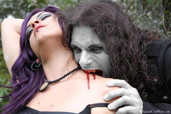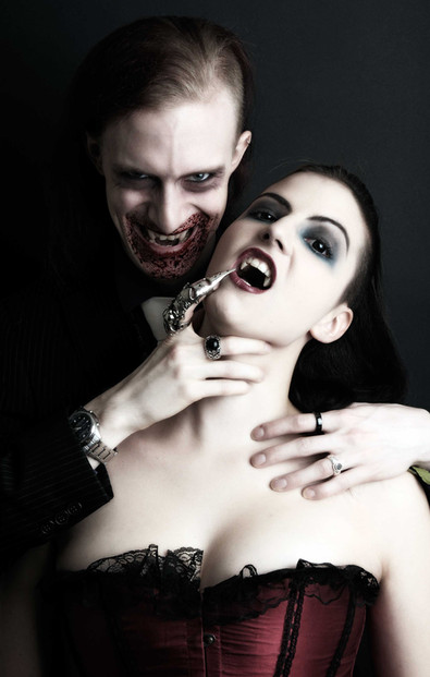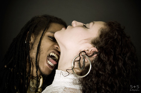 My Halloween picture for you all and a bit of a nod to True Blood. Models are myself (Walter F. Rodriguez) and Megan H. (I used a cable release so I could take the picture after I set up the camera, focus, and settings.)The fangs don't exist. lol I just extended my canines in Photoshop and loved how it turned out.