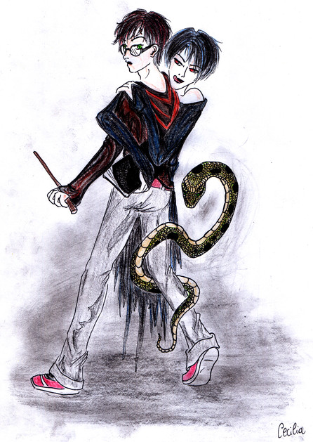 Tom Riddle and Lord Voldemort...some sort of "before&after digging into Dark Magic" program...I watched "Harry Potter and the Chamber of Secrets" today and that's the result...I drew the biggest bastard villain ever created. Snake-face made me hate some shades of green!