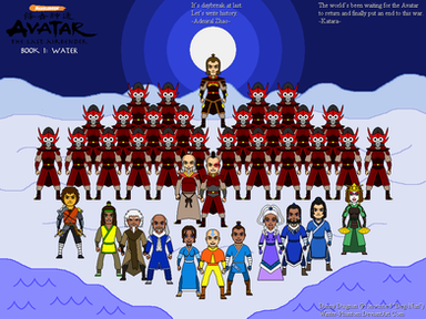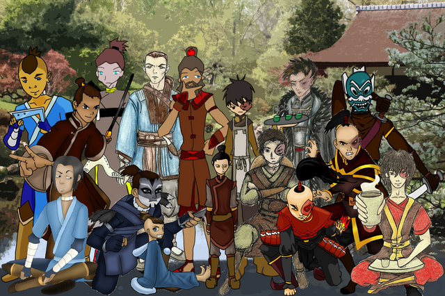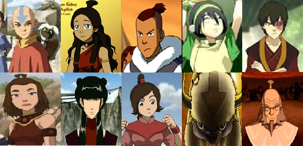 Team AvatarAang, Katara, Sokka, Toph, Zuko and Suki (joined in that order).
