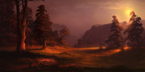 #fantasyart #fantasyillustration #fantasylandscape #landscapescenery #sunset #artworkpainting #scenerypainting