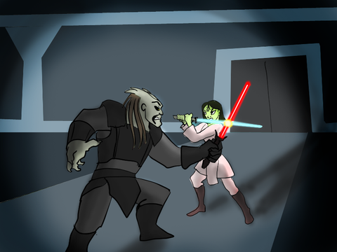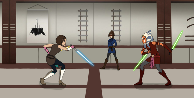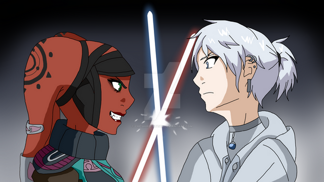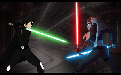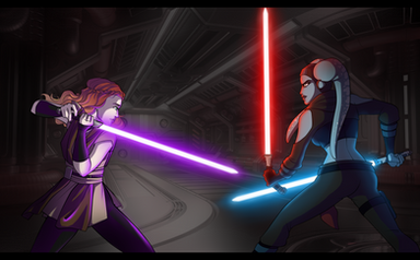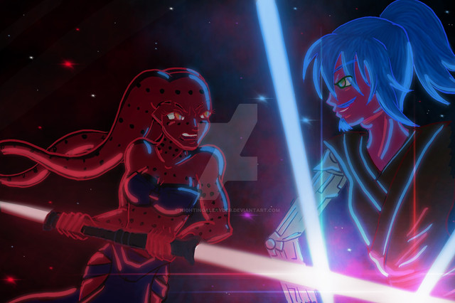 So this was a open collab with of my oc Ivy Wolf dueling with her oc Joss CeilingIvy would probably run across her after Ivy just ran away from some Death troopers and probably ran across Joss. Ivy probably heard of her and is trying to get her to join her side but that's probably not gonna happen now.