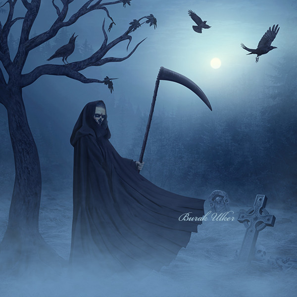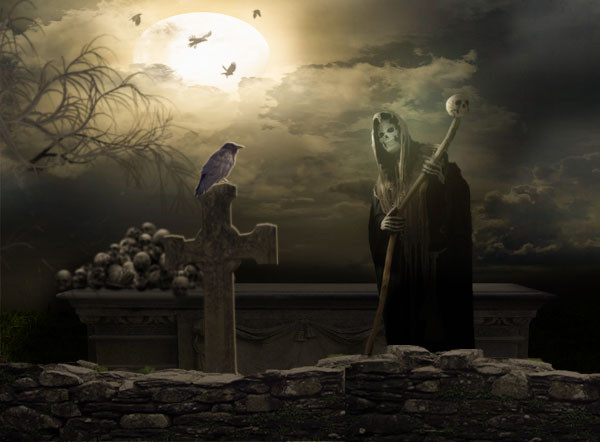 #arch #candle #night #skull #stone #wall #crow #dark #death #grimreaper #moon #moonlight #raven
