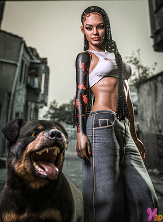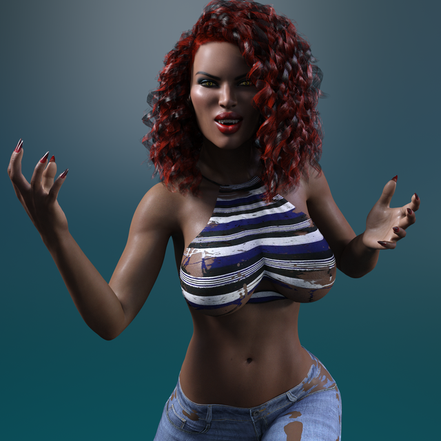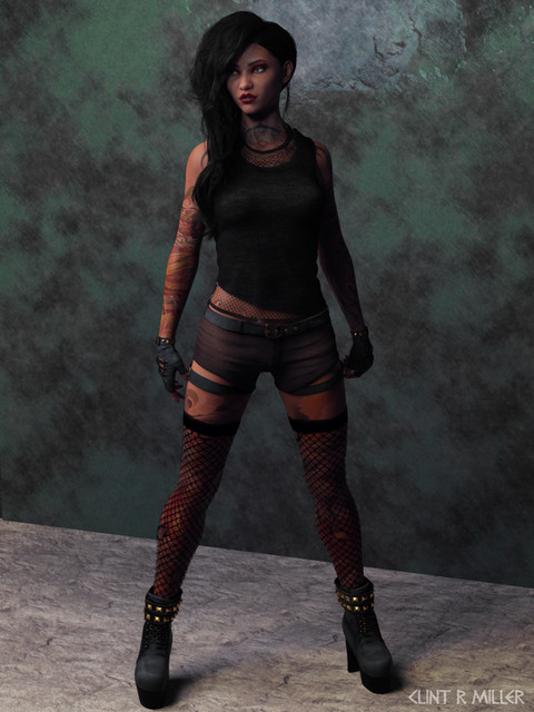 Technical Details: I spent about 12 hours yesterday trying to tweak the Guadalupe texture often used for Ysabel's Genesis 2 model so it would better suit her. The best I came up with was altering the Translucency color, the Transmitted color, and added a very light tint to the Base color. This is a raw test render left running all night. Believe it or not, but this is the exact same shape and texture from Keeping Bad Company .Story Details: The idea behind getting this look right with the tattoos is that many years after Ysabel had been involved with the bikers mentioned elsewhere she goes undercover to infiltrate another gang. Posing as a young woman fleeing to the US from cartel violence and worse, she gets a bunch of tattoos to help with the role. To her horror, she finds out that this new club grew out of the ashes of the one she'd once known, founded by the meanest of the old club's younger members and that they'd carried over none of the skewed honor Ysabel had admired in men like Ferreira and Chavez. But the club also has ties to someone else from her past, a sadistic bastard that Ysabel thought was dead...