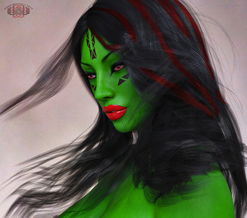 No, I was just playing around with facial features, using whatever felt right to me at the time. I wanted this character to look somewhat Caucasian, I guess, so she'd seem more alien being surrounded by Central/South American Indians.