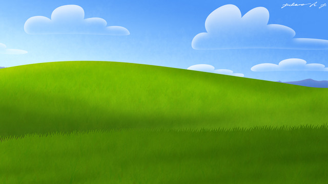 The default XP wallpaper looks similar to this. This is not in any way a photoshopped version of the popular 'bliss' wallpaper. This is from scratch.Related content