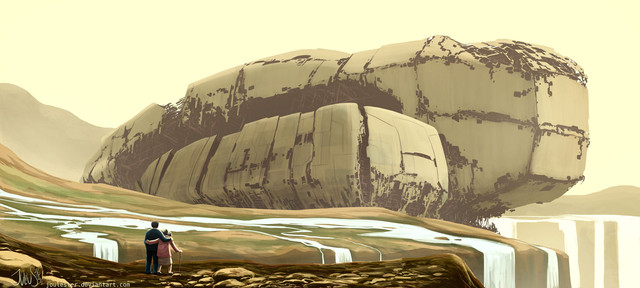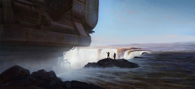 This turned out to be quite different than usual. This was thought to be a beautiful landscape scene of a wonderful waterfall filled with a thick forest. Then I started thinking too much, how it looked simple and how bad ass it would look if I added more meaning to the whole concept. So I figured I’d add one of my soldiers scouting the top of the waterfall. Afterward I added the bunkers (or whatever you want them to be). After that, it all just went uphill. The top of the waterfall wasn’t supposed to be infested but I as always, experimenting, put down a tad bit of pink on a multiplied layer and thought the color looked pretty well on the canvas.