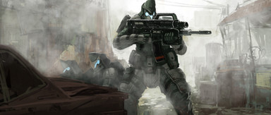 I love paintings of futuristic designs, especially of military/weaponry. It takes a lot of knowledge about modern weapons and soldiers to envision and create realistic ideas, and a lot of skill to paint them as you have. Great work, and thanks for your service in the military.