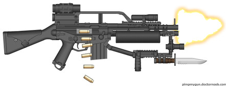 Ah that's much nicer on the hands. I like the flashlight much better this way too. As a whole, the weapon seems amazing, retractable stock and cheek rest, nice placement of the scope and I love the way the G36 handle is merged into the rifle.