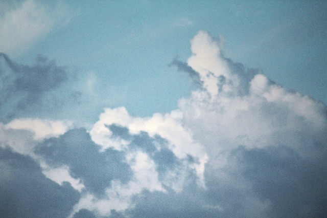 For *dideux because he loves skies, because he is an inspiration, and because he loves the SX70...Beautiful white clouds in a sea of blue sky on a lovely spring afternoon...