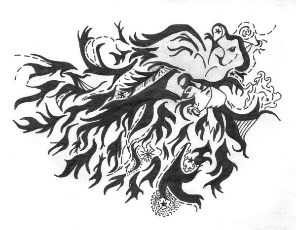 I tried to make his appearance more relative to the Norse myth of the god of mischief, giving him more stereotypical Norwegian characteristics like blond hair and sharp teeth, and dressing him in a bear pelt to mimic the style of the vikings that would have worshipped him. I thought about making him bald, and he looked like the best kind of psychopath that way, but it seemed to make more anthropological sense to give him a lot of hair. Still rather torn.