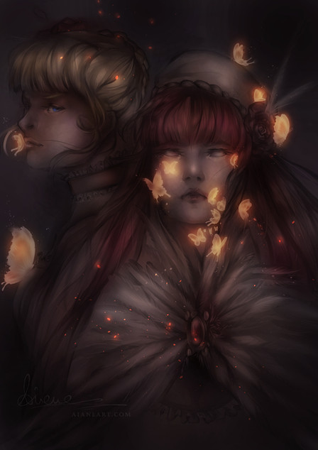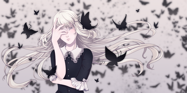 F I N G E R. Give me that magical finger then! This looks really, really good. I love how melancholy she looks with the semi-transparent butterflies ahh.