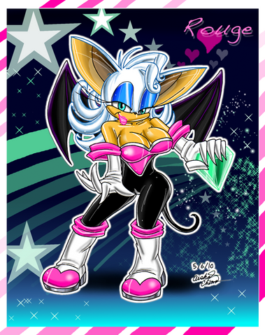 This is my real Rouge version. And some one will think why i draw she in the space??? Well who played Sonic Adventure 2 will recognize this stage (well i hope hehehe), is MAD SPACE stage, where Rouge collect more Master Emerald pieces before fight with Knucles. I hope the fans and no fans too of course, will like this one!