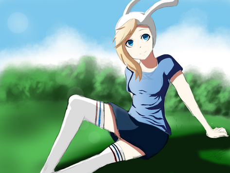 Wow this is a pretty sweet pic of Fionna. I really like the use of vibrant colors and the details in her face and hair. Also the pose is pretty sweet. I like the expression on her face. She looks too cute. Hey great job with this. Keep up the good work.