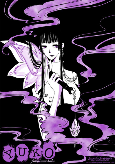 Her name is Ichihara Yuuko (not a real name)She was created by CLAMP, and appear in Tsubasa Reservoir Chronicle and xxxHOLiC manga, as the witch of dimensions