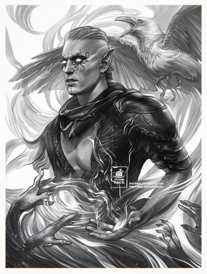 Do you have that Zevran in a green cloak on there? Am I missing it? I would really love a print of that. In a weird coincidence, before I realized you were a Dragon Age person, I found that pic first while doing a search for elves because I was trying to find a picture to match an original character I created and that one of Zev is spot on. Like 100%.