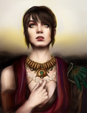 it looks really beautiful. you really captured her character, she looks very proud and intelligent, and adding the warm colours adds a very nice effect