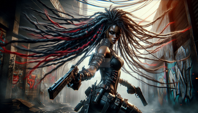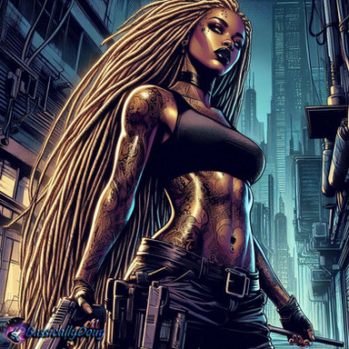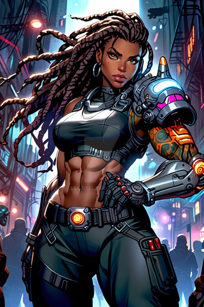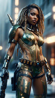 #characterdesign #videogamefanart #warrior #portrait #scifi #cyberpunk #badass #adoptables #africanamerican #beauty #conceptart #dalle3 #design #fantasy #fantasyart #illustration #sorcery #exclusives #aigenerated #aiartwork #aiartcommunity #aicommunity