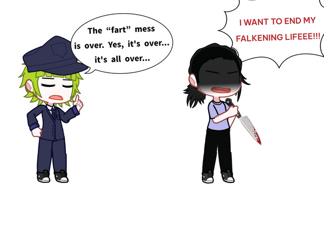 I know I was suppose to put put my persona or OC in the fake collab but instead I put the police here because holblodu49 What in the living F🦆CK is your problem?!Also I edited the fake collab