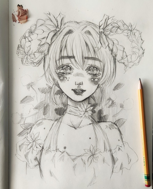 #bigeyes #cartoony #colorful #dreamy #flowers #girl #painting #saturation #surreal #watercolor #watercolorpainting #watercolortraditional