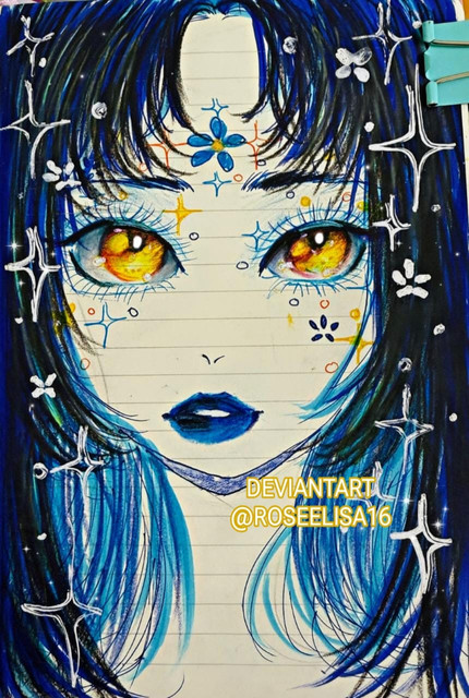 HEHEHEHEHE i like to go crazy with my colors and create unrealistic portraits such as this one.Which i sketched free-hand because i didn't know how the paint would turn out so i didn't invest too much into the sketch - i did one more of the super washy messy paintings with colorful spots and this is the result.