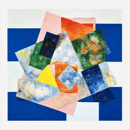Wonderful work, if i had to insert a title it would be "Sea" because those cold colours, the estensive use of blue reminds me of a sea, not a violent sea but a calm sea. These colours are like delicate waves that kiss the beach and the observer with a gentle touch of geometric shapes. Great work, even though i am not particularly fond of abstract art i like your style especially this piece.