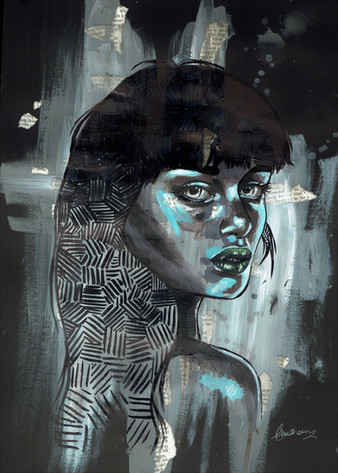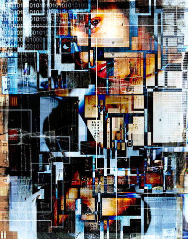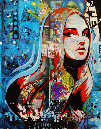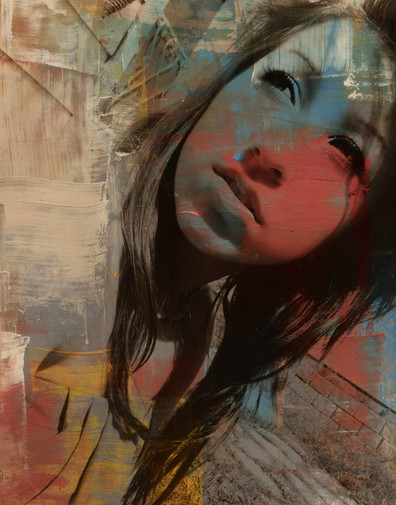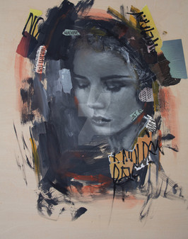 Spraypaint, newspaper and photo transfer on canvas, 50x70 cm.Uses a stock photo by Mihaela-VStock .