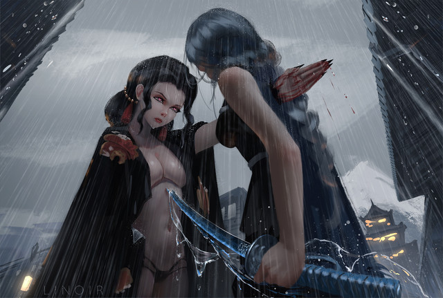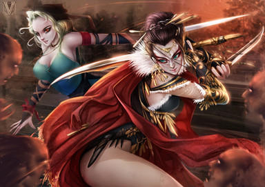 the weapons for the girl on top... jesus those are a type that are so underutilized... clawed gloves and shoes (heels in this case) give off such a wild girl vibe